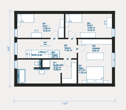 Baufamilien können nach eigenem Geschmack den Grundriss des Hauses variieren und weitere Anbauteile planen. Dadurch besteht die Möglichkeit, das Haus geräumiger zu machen.
