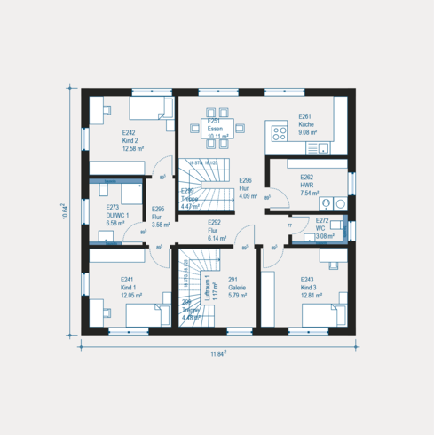 Das Generationenhaus Generation 18 bietet mit knapp 310 m² Nettogrundfläche und einer großen Einliegerwohnung im Ober- und Dachgeschoss viel Platz für die ganze Familie.