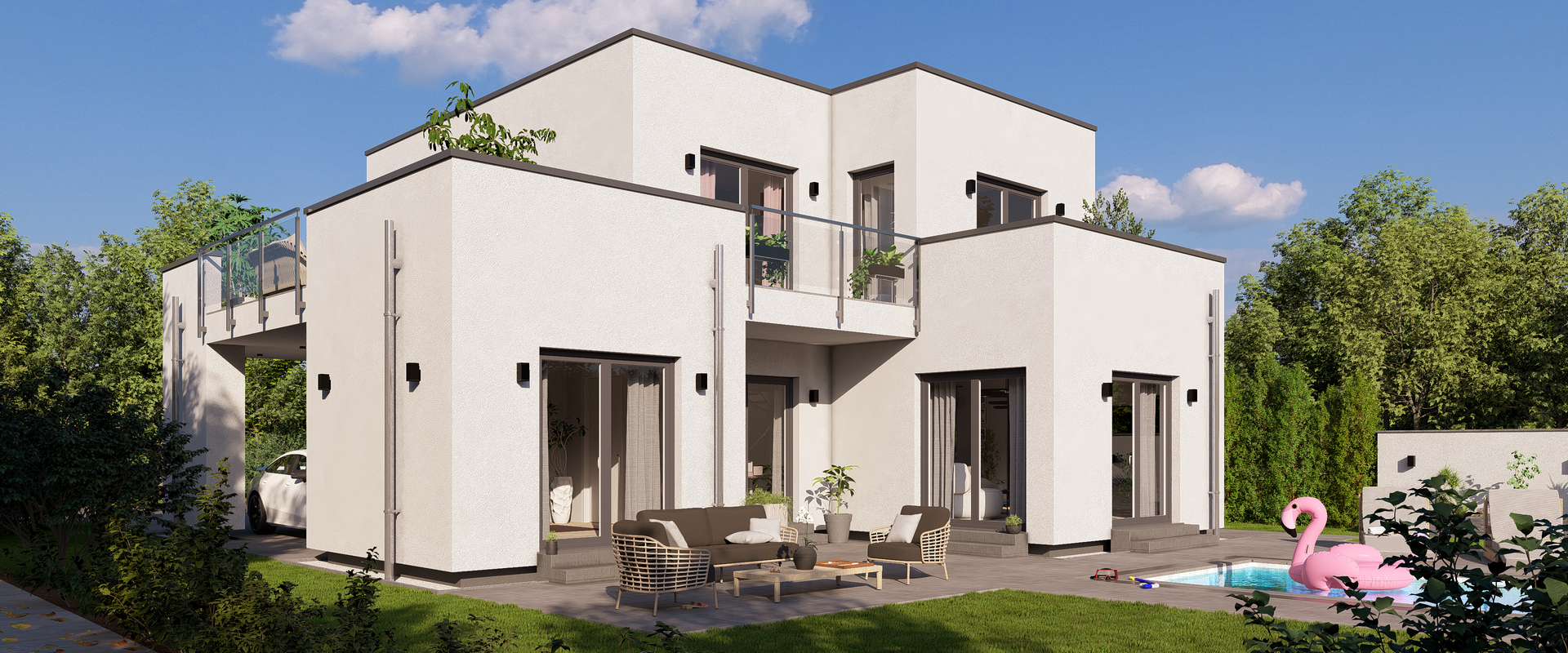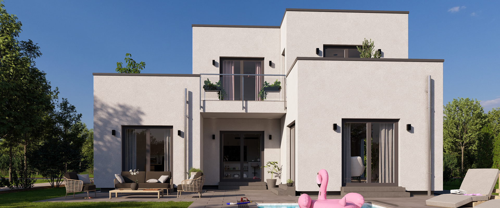 Unser Highline 1 vereint außergewöhnliche Architektur und großzügige Raumgestaltung. Nicht nur das moderne Flachdach macht dieses Haus zum Hingucker. Ein Wohlfühltraum auf fast 223 m².