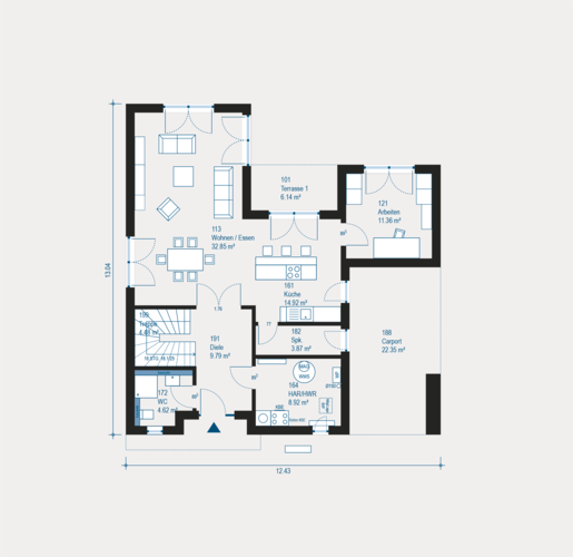 Baufamilien können nach eigenem Geschmack den Grundriss des Hauses variieren und weitere Anbauteile planen. Dadurch besteht die Möglichkeit, das Haus geräumiger zu machen.