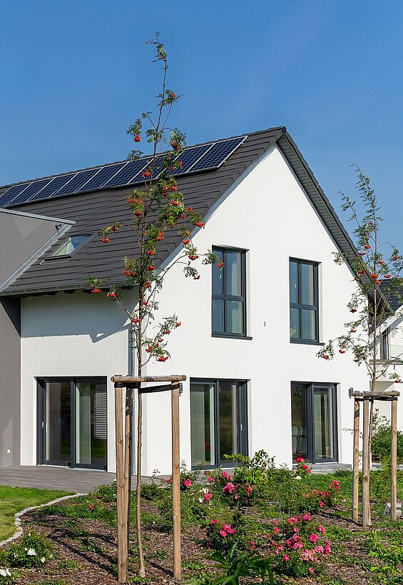Unser Home 14 bietet dir ein großzügiges, lichtdurchflutetes Zuhause. Auf knapp 197 m² verteilt auf 5 Zimmer ist hier Platz für die ganze Familie. Die angegebenen Maße beziehen sich auf die Variante mit 1,5-geschossigem Satteldach.