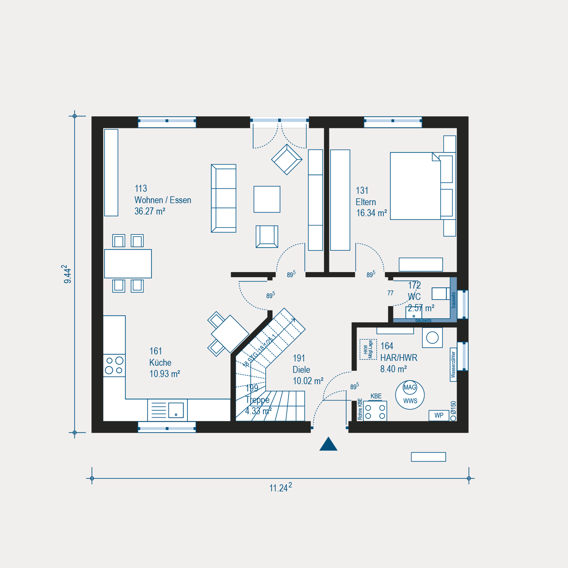 Dieses Fertighaus basiert auf der allkauf Hausserie Trendline S 2, welches in dieser Form nicht mehr Teil unseres aktuellen Programms ist. Als Orientierung dient dir unser aktuelles Hausmodell Home 12, das in Grundriss, Größe und Wohnkonzept diesem Musterhaus sehr nahekommt.